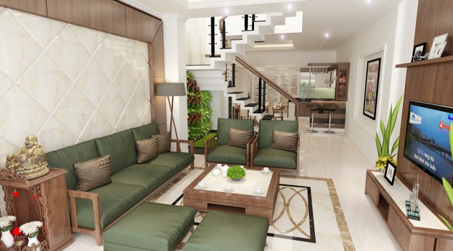 Thiết kế nội thất nhà phố 1 mặt tiền ( nhà phố 1 tầng, 2 tầng, 3 tầng … ) : 180.000VNĐ/m2 sàn