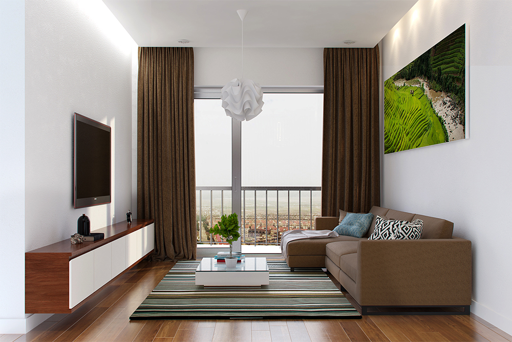 Mẫu nội thất phòng khách căn hộ chung cư 77m2