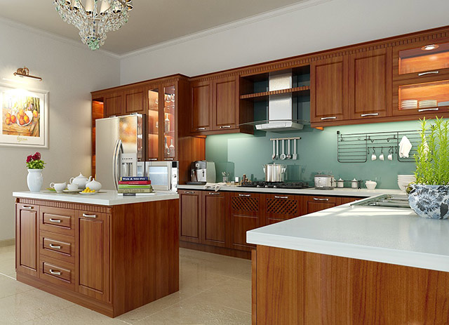 Giá tủ bếp gỗ căm xe đẹp giá rẻ tphcm trọn gói 100%, không phát sinh bất kì chi phí :