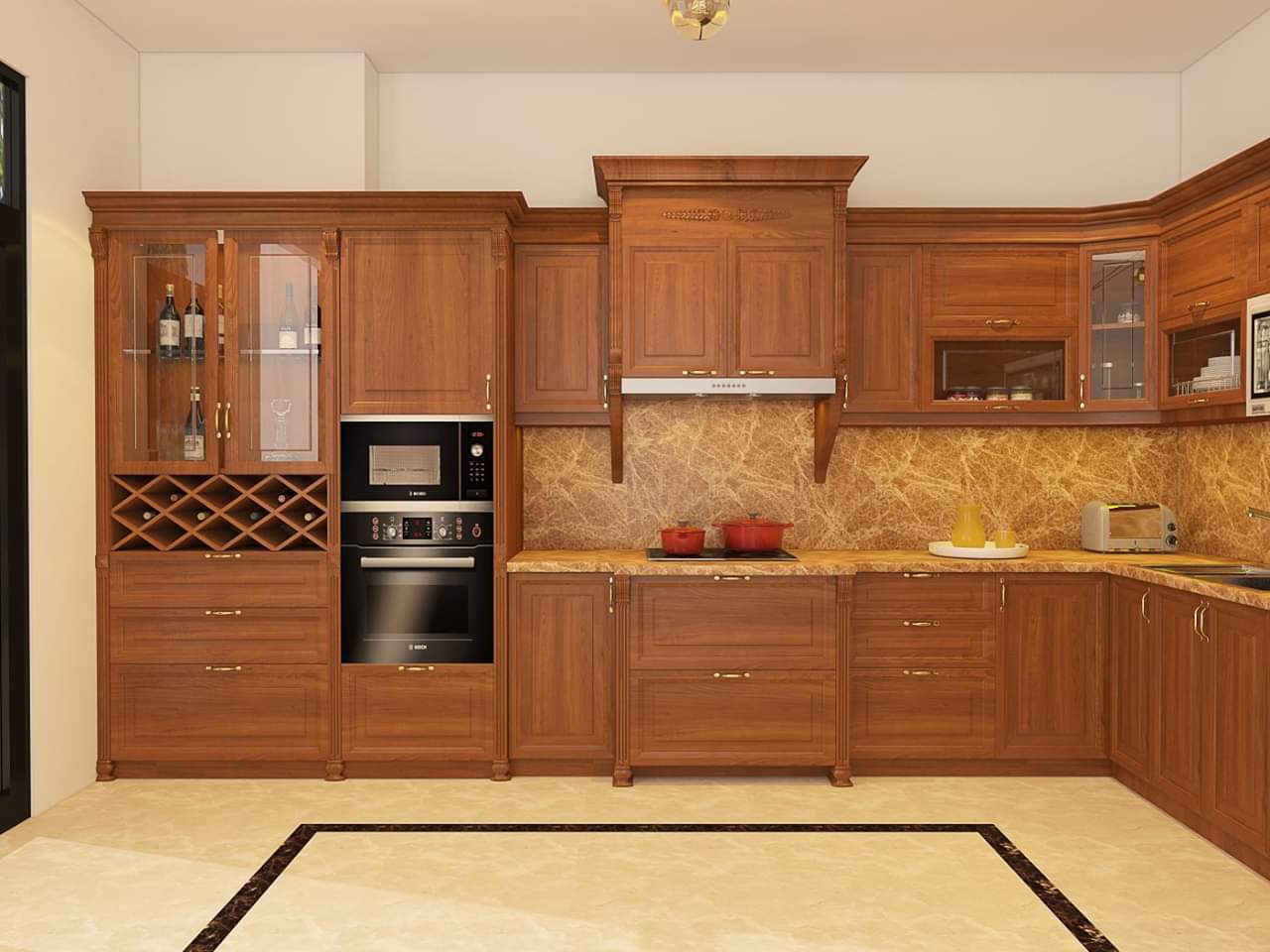 Bảng báo giá tủ bếp gỗ gõ đỏ Lào, Nam Phi đẹp .